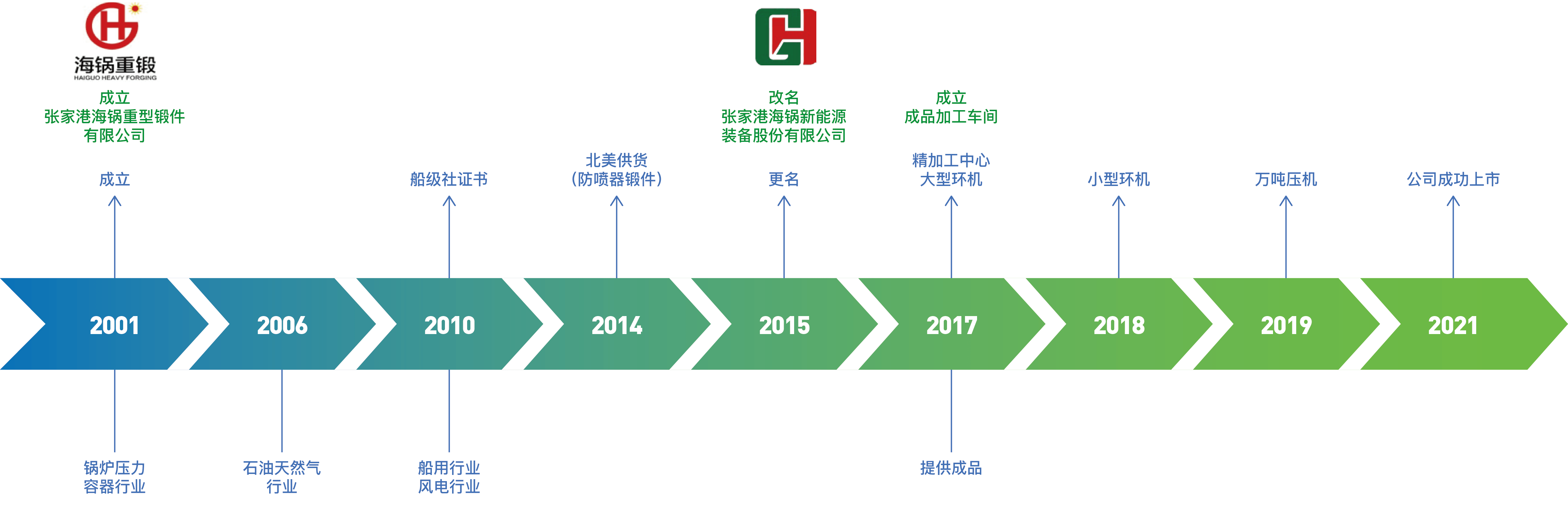 - 張家港海鍋新能源裝備股份有限公司(股票簡稱:海鍋股份;股票代碼:301063)成立于2001年,于2021年9月24日順利在深交所創(chuàng)業(yè)板上市。公司主要從事大中型裝備專用鍛件的研發(fā)、生產(chǎn)和銷售,產(chǎn)品廣泛應(yīng)用于油氣開采、風(fēng)力發(fā)電、機(jī)械裝備以及船舶、核電等領(lǐng)域,為全球裝備制造商提供綜合性能好、質(zhì)量穩(wěn)定的定制化鍛件產(chǎn)品及零部件。